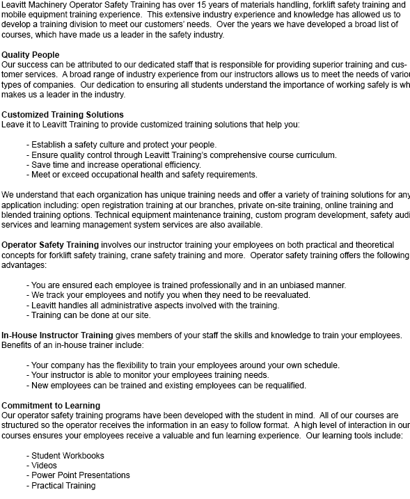 We offer many options to help teach your personnel. In addition, we offer you two possibilities for training. We can provide it on-site or at our location of operations. Each course can be tailored to your equipment and workplace.